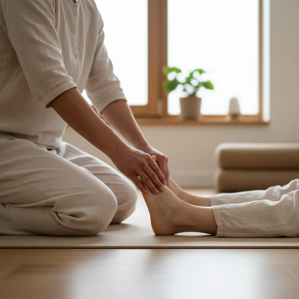 Im Nuad Thai Yoga ( passives Yoga ) wird der Empfänger passiv in Yogastellungen gebracht, wodurch bestimmte Körperbereiche und Energiebahnen gedehnt werden. Dadurch öffnet sich der Körper, Spannungen werden gelöst und Giftstoffe abtransportiert – die Energiebahnen werden frei, blockierte Energie kann wieder frei fließen und der gesamte Körper kommt in die Entspannung.